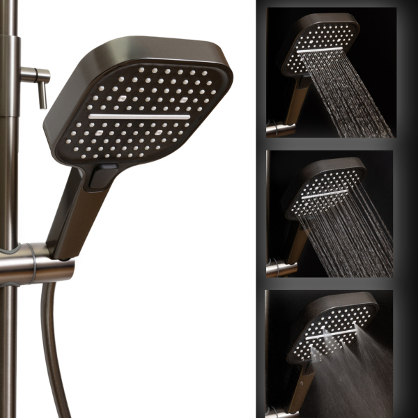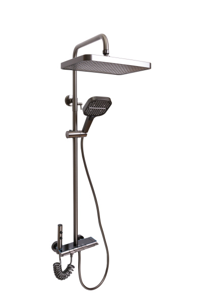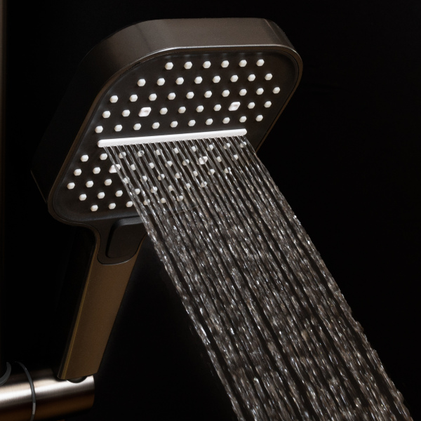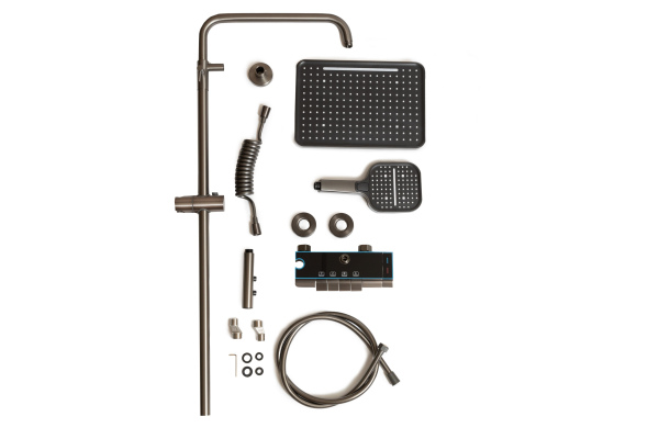 Il s'agit d'un panneau de douche de haute qualité avec un design moderne et élégant. Affichage numérique innovant : étagère en verre trempé résistant aux rayures. Les fonctions sont contrôlées à l'aide de touches tactiles : vous pouvez sélectionner le mode d'alimentation en eau et régler précisément la température. 7 modes d'alimentation en eau : Douchette à effet pluie tropicale suspendue, douchette à main sur flexible avec 3 modes, douchette supplémentaire avec flexible spiralé et 2 modes, robinet d'alimentation en eau intégré au panneau. Contrôle de température en douceur, installation facile, couleur : anthracite, corps en laiton (pas en plastique ABS) revêtement durable et résistant à la corrosion, garantie de 24 mois, fabriqué en Chine pour le marché d'Europe occidentale, conforme aux normes de l'UE (certifié)